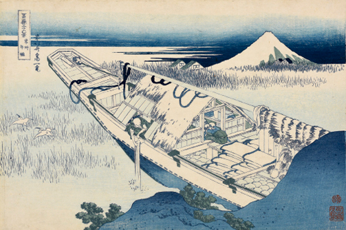 島根県立博物館が所蔵していた新庄コレクションを受け継いだ当館は、日本の版画史を辿れる体系的なコレクションの形成を目指し、「日本の版画」を収集方針の一つに定めました。1999年の開館以前の準備室時代より、浮世絵の分野では、新庄コレクションの内容を補完、充実させるべく、北斎と広重の風景版画を中心に収集活動を行い、特に北斎を代表する風景版画シリーズ《冨嶽三十六景》[図4]、《諸国瀧廻り》[図5]、《諸国名橋奇覧》の収集に努めています。(※2022年までに約50件購入)